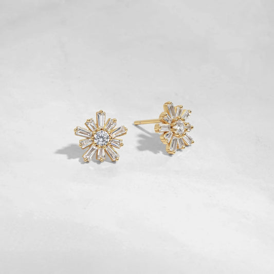 Flower Bloom White Cubic Zirconia Baguette Stud Earrings