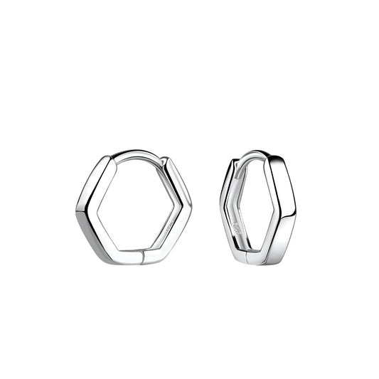 Hexagonal Silver Huggie Earrings (13 mm)